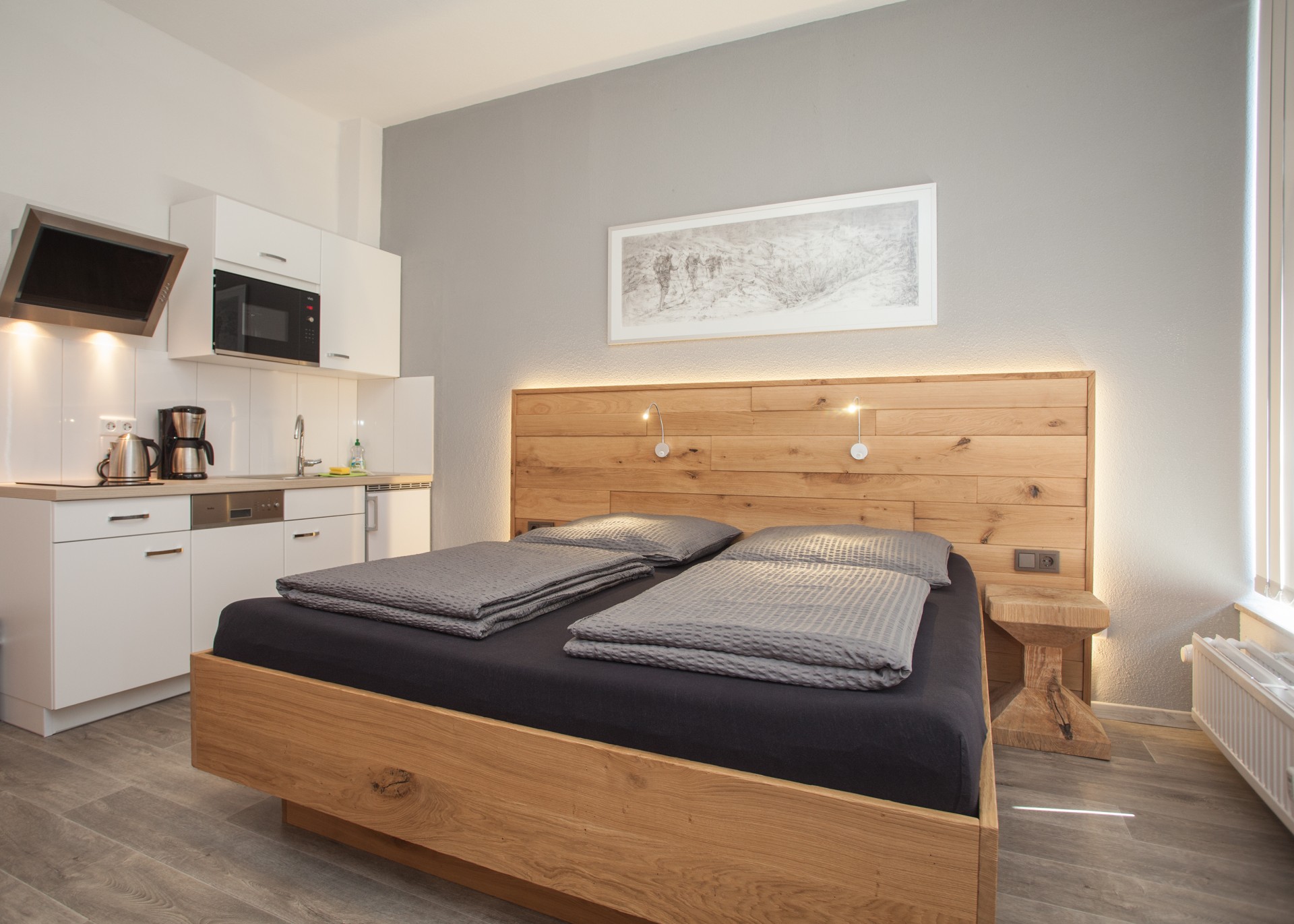 Unsere Apartments sind modern eingerichtet – kein Omasofa, kein Kitsch. Platz für 1 bis 10 Leute, richtig gemütlich und ready für actionreiche Tage & kurze Nächte.